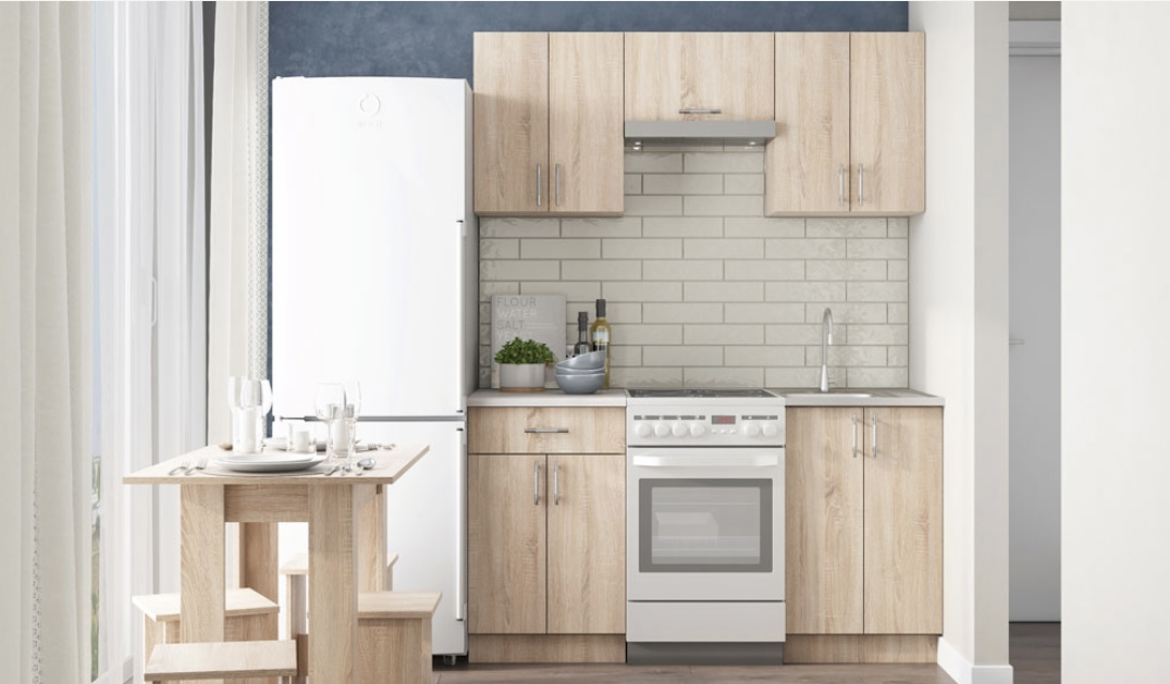 Amenajarea bucatariei este o decizie destul de grea deoarece petrecem mult timp in aceasta. Daca spatiul tau se rezuma la 200cm si esti un iubitor al culorii SONOMA, noi iti recomandam aceasta mobila de bucatarie!! Notă importantă: Blatul se expediază în funcție de stocul disponibil, în variantă alb sau crem!!! Detalii Materiale: - Corp: Pal melaminat alb
