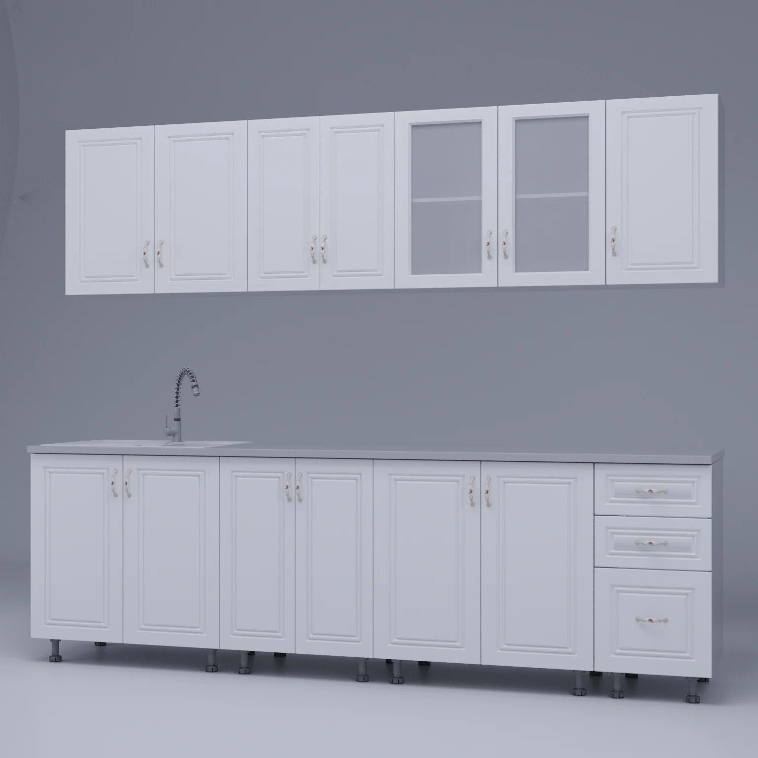 Daca spatiul tau se rezuma la 260cm si esti un iubitor al culorii alb mat, noi iti recomandam mobila de bucatarie Liusa!