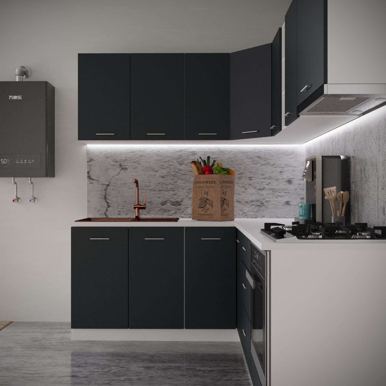 Daca spatiul tau se rezuma la 180 x 220 cm si esti un iubitor al culorii Antracit, noi iti recomandam aceasta mobila de bucatarie!