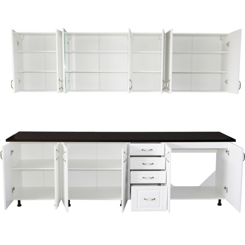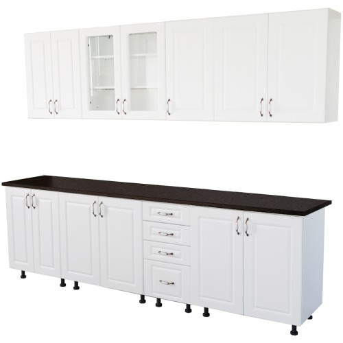 Bucatarie Zebra 260 cm din MDF Alb Mat cu blat termoizolant negru - Bucatarii set - Bucataria Zebra 2.6 metri MDF are corpurile fabricate din PAL melaminat alb cu grosimea de 16 mm, usile sunt fabricate din MDF infoliat cu grosimea de 18 mm, iar blatul es