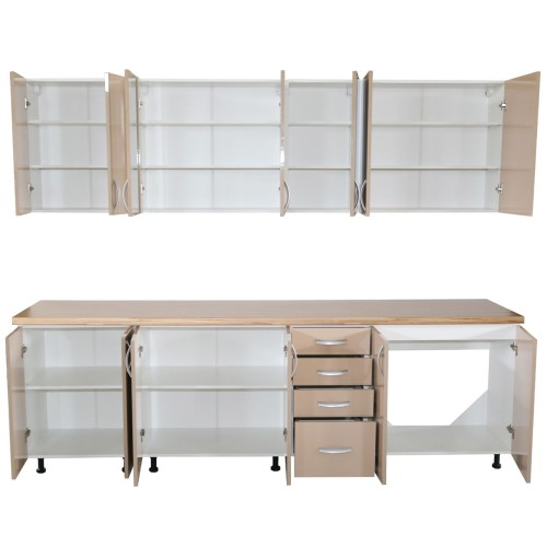 Bucatarie Zebra 260 cm din PAL Cappuccino cu blat termoizolant crem - Bucatarii set - Bucataria Zebra 2.6 metri MDF are corpurile fabricate din PAL melaminat alb cu grosimea de 16 mm, usile sunt fabricate din MDF infoliat cu grosimea de 18 mm, iar blatul