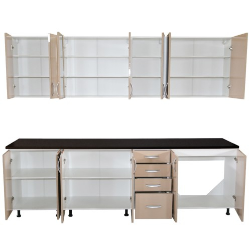 Bucatarie Zebra 260 cm din PAL Cappuccino cu blat termoizolant negru - Bucatarii set - Bucataria Zebra 2.6 metri MDF are corpurile fabricate din PAL melaminat alb cu grosimea de 16 mm, usile sunt fabricate din MDF infoliat cu grosimea de 18 mm, iar blatul