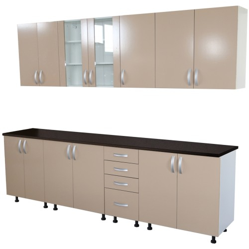 Bucatarie Zebra 260 cm din PAL Cappuccino cu blat termoizolant negru