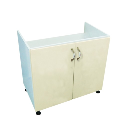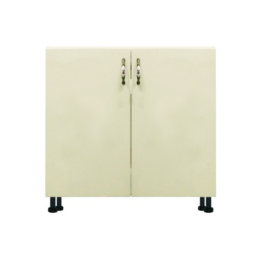 Masca pentru chiuveta cu 2 usi Zebra, Alba/MDF Vanilie lucios, fara blat, 80 x 82 x 50 cm - Corpuri inferioare - Corp inferior 80 cu 2 usi masca chiuveta Zebra MDF vanilie simplu.Dimensiuni (l x h x a): 800 x 820 x 500 mmCuloare: Alb cu vanilie.Materiale