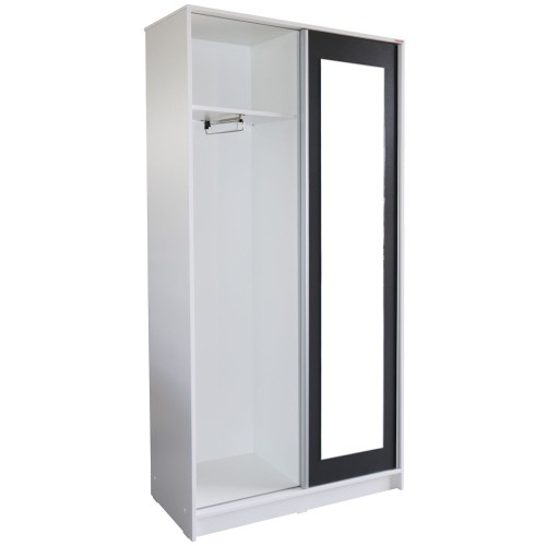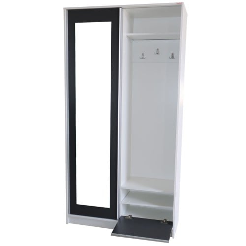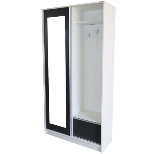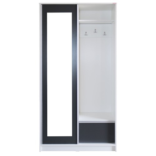 Cuier David Alb, 100 x 38 x 194 cm - Cuiere Set - Dimensiuni (l x h x a): 1000 x 1940 x 378 mmCuloare: Alb cu Gri.Descriere: Usa culisanta cu glinda, suport de umerase in spatele usii culisante, manere din profil de aluminiu la usi, usa mica rabatabila cu