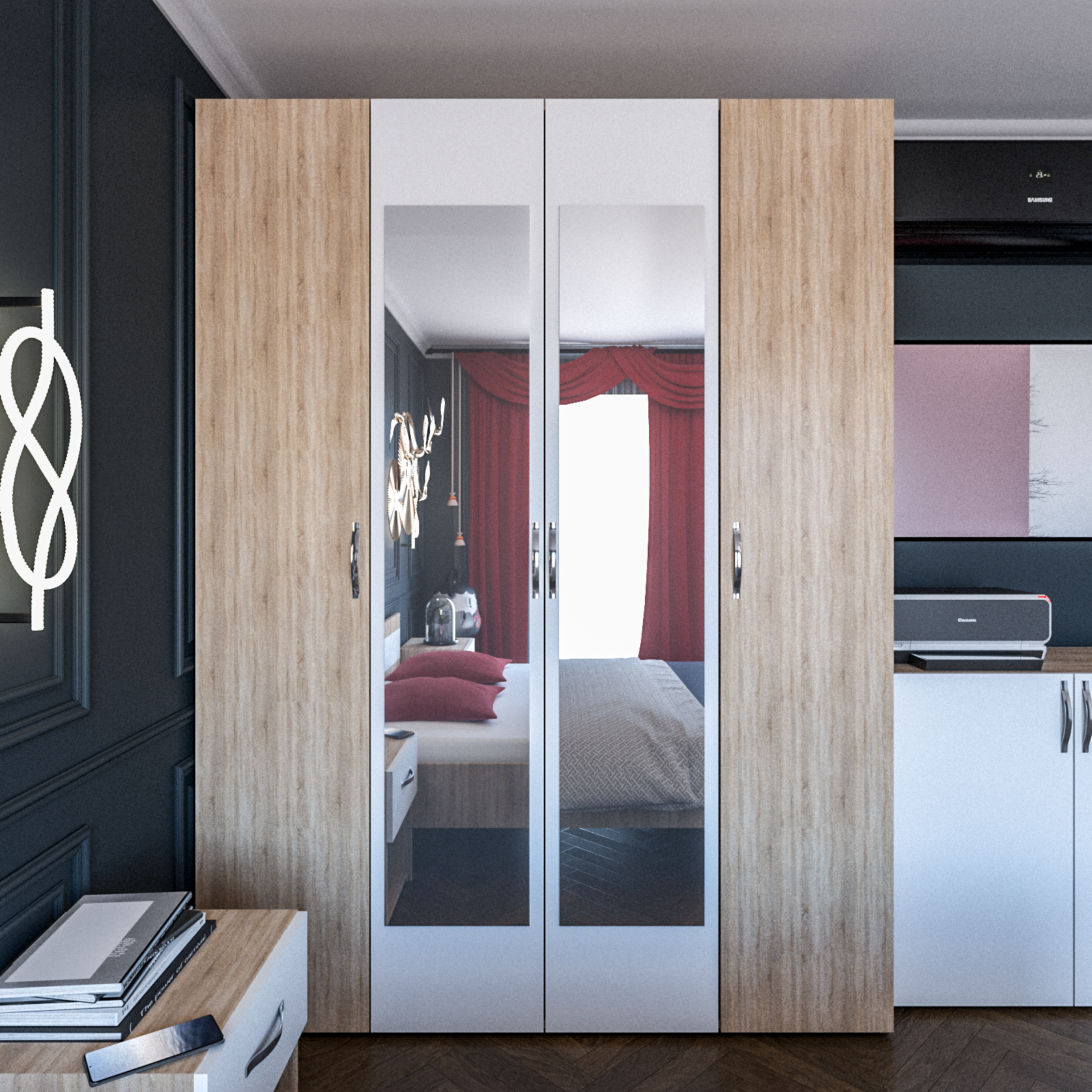 Dulap 4 usi cu rafturi si bara haine: 160 x 47 x 200 cm