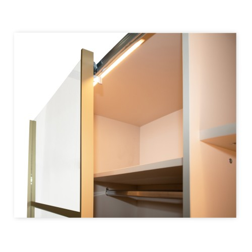 Dulapurile cu usi culisante Gold sunt o alegere moderna pentru orice dormitor sau dressing. SPECIFICATII Sisteme de culisare cu amortizare la inchidere. 3 Benzi LED incastrate (stanga, dreapta si sus) care se aprind in momentul deschiderii usilor cu tempo