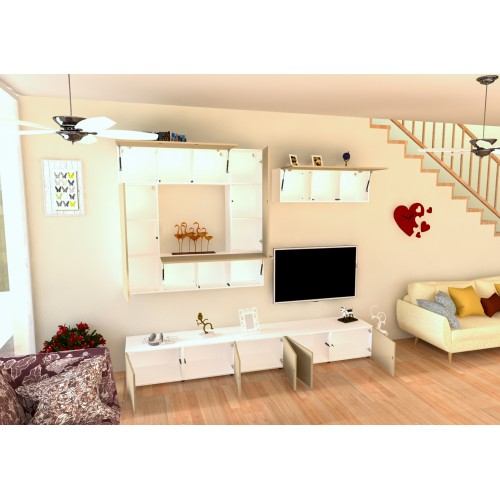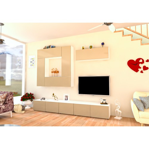 Living Armonia PAL Cappuccino Lucios - Varianta 2 cu sistem "PUSH TO OPEN" - -