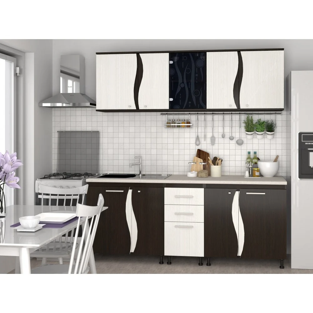 ● Bucataria este in 2 nuante ( PAL Wenge si PAL Alb Hacienda ). Partea Inferioara este formata din 3 corpuri ( corp de 80cm cu 2 usi, corp de 40cm cu 2 sertare si o usa si masca de chiuveta ) iar partea superioara se compune din ( 2 corpuri de 80cm si un corp de 40cm cu usa geam ).