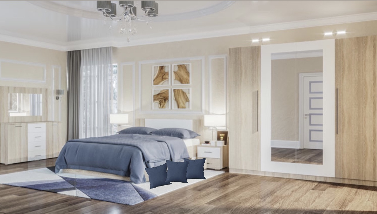 -1 x pat 164 x 87 x 200cm -2 x noptiera 45 x 42 x 40 cm -1 x comoda 134 x 81 x 41 cm -1 x dulap 4 usi 220 x 210 x 58 cm Produsul contine feroneria necesara si schema de montaj ATENTIE:Obiectele din decor nu sunt incluse !!! | ||