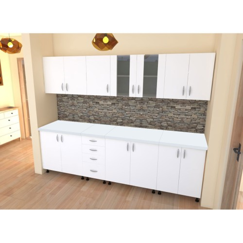 Bucatarie Alfa 2.6 metri PAL alb cu blat Alb - Bucatarii set - Bucataria Alfa 2.6 metri Alba are corpurile fabricate din PAL melaminat alb cu grosimea de 16 mm, usile sunt fabricate din PAL cu grosimea de 16 mm, iar blatul are culoarea Alb si are gros