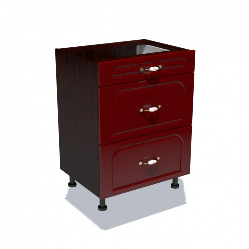 Corp inferior 60 cu 3 sertare metalice pentru greutate Zebra MDF tulip rosu