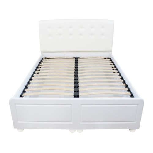 Pat Dynasty 140x200 cm, Alb - Paturi - Patul cu somiera metalica rabatabila pentru saltea de 140x200 cm Dynasty este fabricat din MDF Alb cu grosimea de 25 mm, iar tablia de la cap este imbracata in burete gros si tapitata cu piele ecologica bej cu nastu