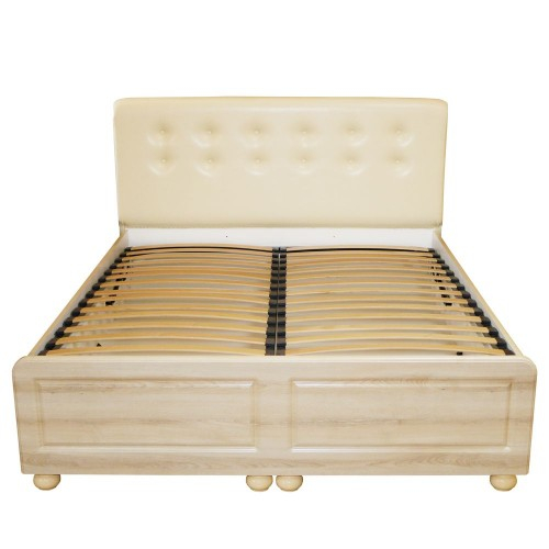 Pat Dynasty 180x200 cm, Sonoma - Paturi - Patul cu somiera metalica rabatabila pentru saltea de 180x200 cm Dynasty este fabricat din MDF Sonoma cu grosimea de 25 mm, iar tablia de la cap este imbracata in burete gros si tapitata cu piele ecologica bej cu