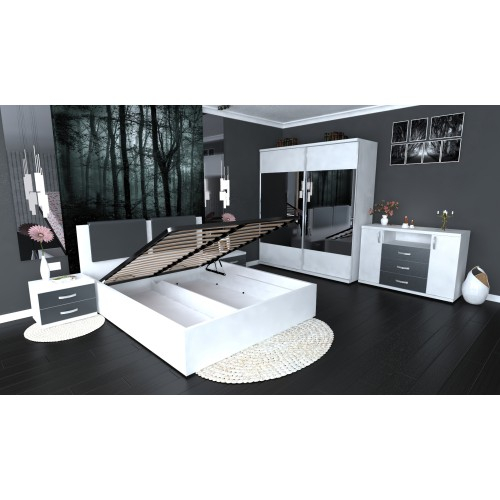 Pat Laguna 1600x2000 cu somiera rabatabila alb cu gri