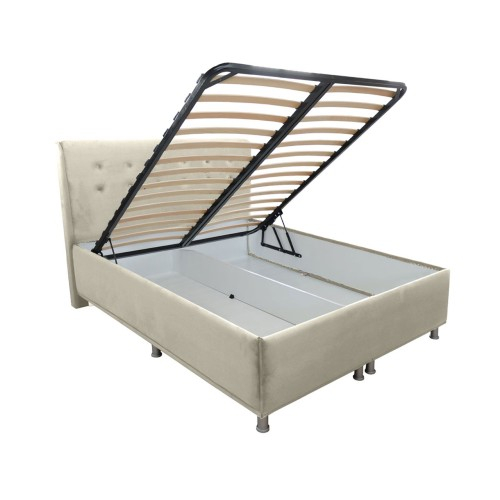 Pat tapitat 140 x 200 M04 - Paturi - Patul pentru saltea de 140x200 cm este fabricat din PAL melaminat cu grosimea de 18 mm si este tapitat integral cu burete si stofa. Patul are o lada foarte spatioasa, ideala pentru depozitat lenjerii sau chiar obiecte