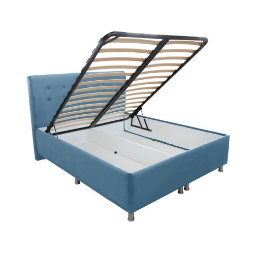 Pat tapitat 140 x 200 M72 - Paturi - Patul pentru saltea de 140x200 cm este fabricat din PAL melaminat cu grosimea de 18 mm si este tapitat integral cu burete si stofa. Patul are o lada foarte spatioasa, ideala pentru depozitat lenjerii sau chiar obiecte