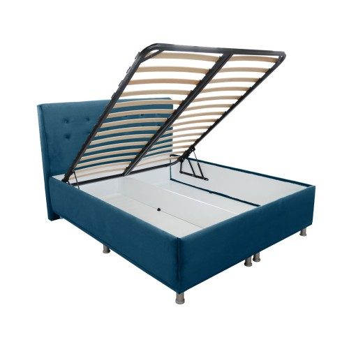 Pat tapitat 140 x 200 M76 - Paturi - Patul pentru saltea de 140x200 cm este fabricat din PAL melaminat cu grosimea de 18 mm si este tapitat integral cu burete si stofa. Patul are o lada foarte spatioasa, ideala pentru depozitat lenjerii sau chiar obiecte