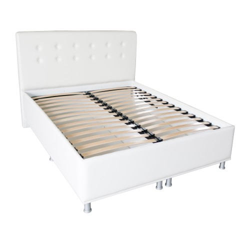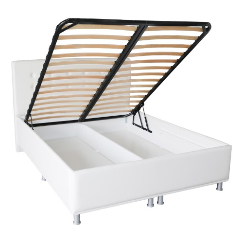 Pat tapitat 1400x2000 alb cu somiera rabatabila - -