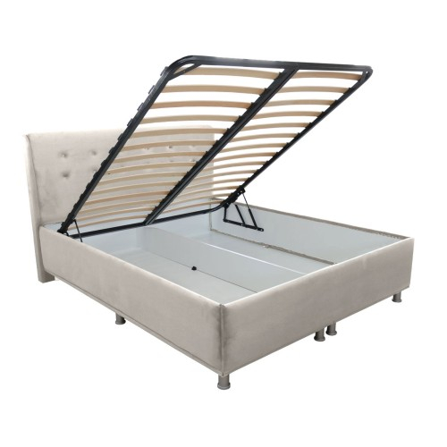 Pat tapitat 160 x 200 M02 - Paturi - Patul pentru saltea de 160x200 cm este fabricat din PAL melaminat alb cu grosimea de 18 mm si este tapitat integral cu burete si stofa verde. Patul are o lada foarte spatioasa ideala pentru depozitat lenjerii sau chiar