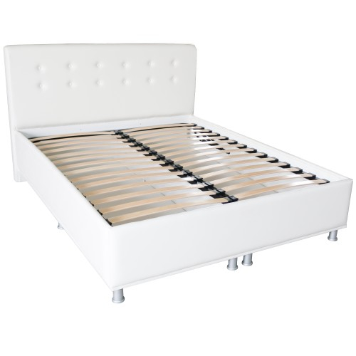 Pat tapitat 1600x2000 alb cu somiera rabatabila - -