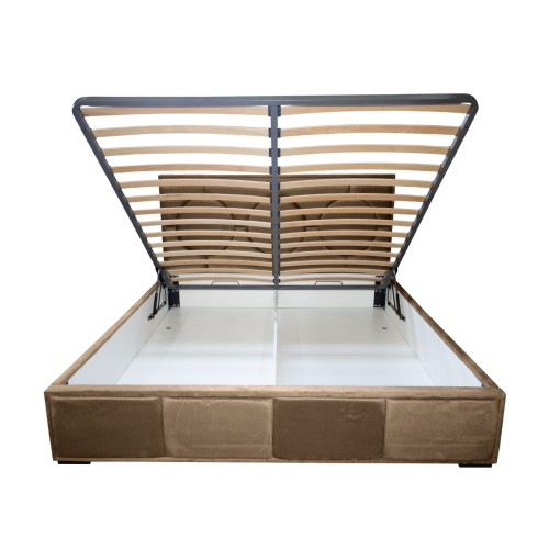 Patul tapitat Gold Cerc face parte din colectia de paturi tapitate Gold si reprezinta o alegere moderna si practica pentru orice dormitor. Patul are somiera metalica rabatabila care transforma tot interiorul lui intr-o lada spatioasa cu acces foarte facil