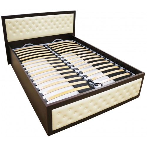 Pat Torino 140x200 cm cu somiera metalica rabatabila si lada, Wenge / Piele ecologica bej - Paturi - Patul Torino pentru saltea 140 x 200 cm are un aspect deosebit datorita tapiteriei bej cu nasturi pe tablia de la cap, cat si pe tablia de la picioare. Pe